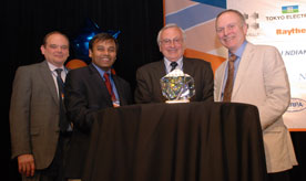 Steve Hillenius, Executive Vice President, SRC; Subhasish Mitra, Stanford University; Larry Sumney, President and CEO, SRC; and award recipient Professor Robert Dutton, Stanford University[Note: The following is the presentation of the 2011 Aristotle Award by Larry Sumney, SRC President and CEO, at TECHCON 2011.]