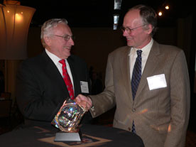 Larry Sumney, SRC President and CEO, presents the 2010 Aristotle Award to Professor Mark Lundstrom, Purdue University2010 Aristotle Award