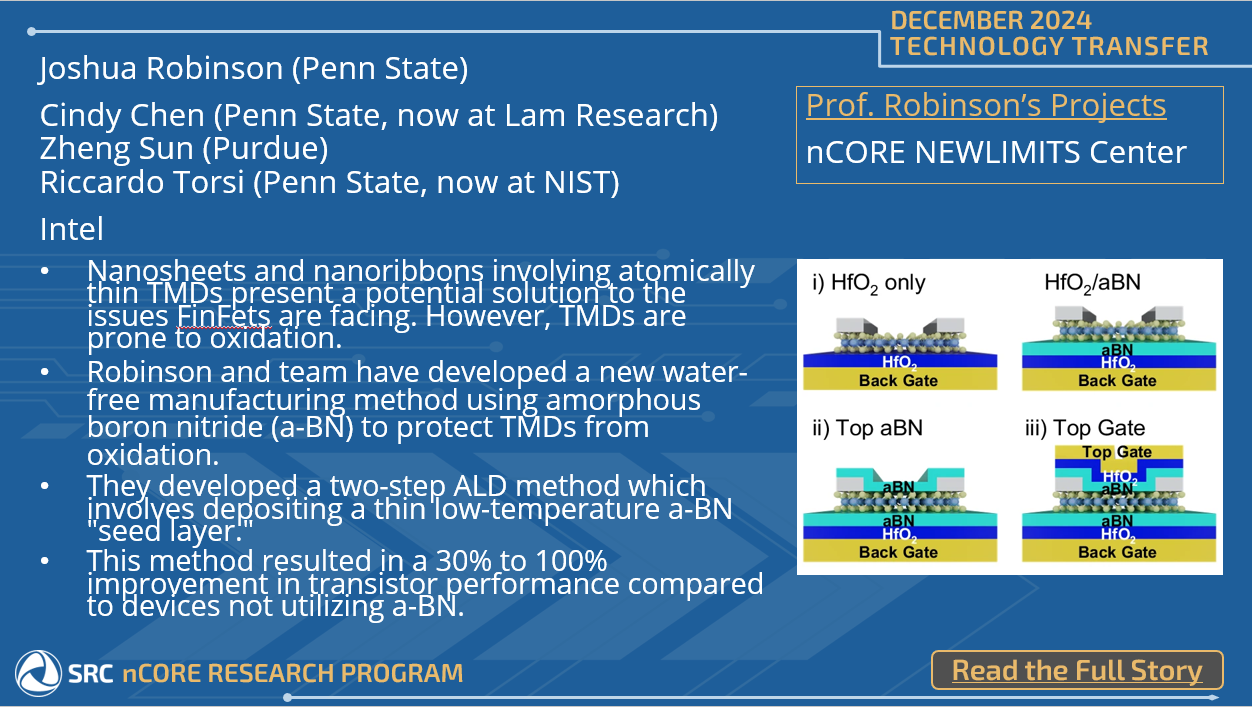 Pennsylvania State University Professor Joshua Robinson and his team of collaborators, including researchers from SRC member company Intel, are facing this challenge head on. We are excited to share that they recently published their research findings, supported by the SRC nCORE NEWLIMITS Center, in a Nature Communications publication.