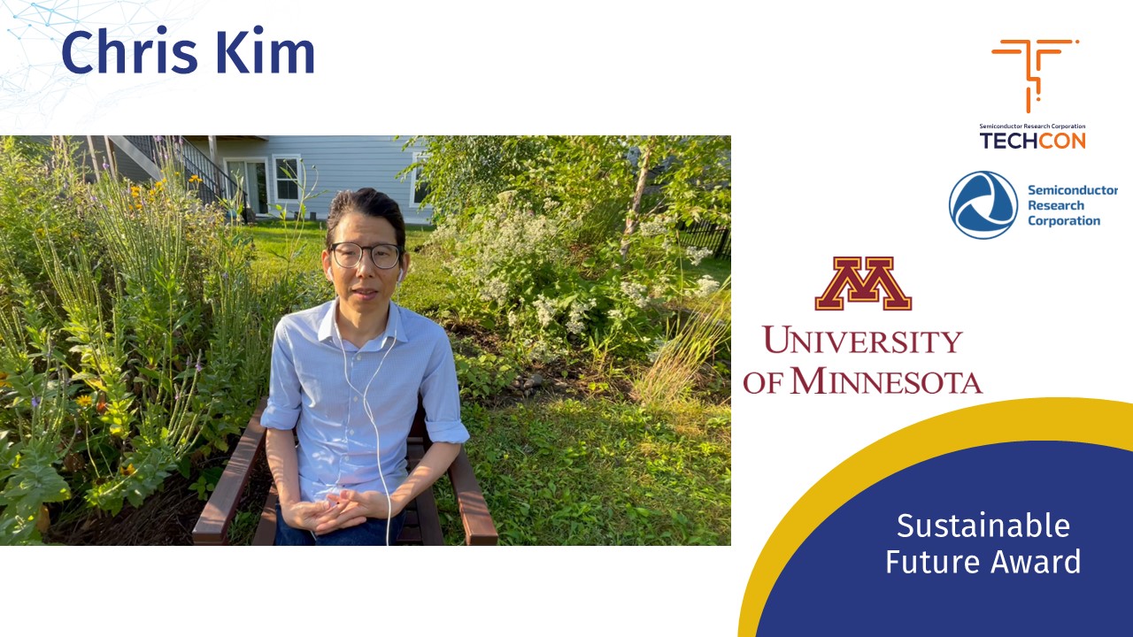 celebrates SRC research aligned with our Commitment to Sustainability. The 2024 Sustainable Future Award winner is Professor Chris Kim, University of Minnesota. Chris has been honored with the SRC Sustainable Future Award for his groundbreaking contributions to energy efficiency and sustainability. His GRC Artificial Intelligence Hardware project involves developing a quantum-inspired method to tackle complex NP-hard and NP-complete problems using CMOS ring oscillators, which operate on significantly less power compared to existing quantum systems. Congratulations, Chris Kim!