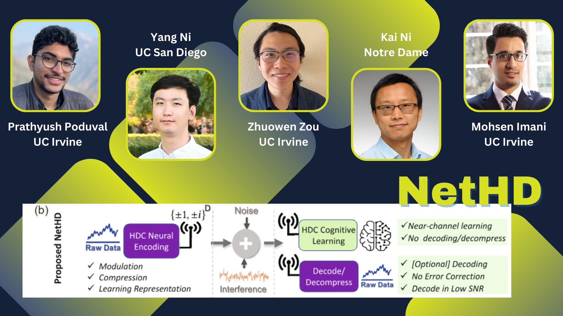 Exciting news has just emerged in the world of IoT technology: a groundbreaking patent for the NetHD system was granted in June 2024, following the publication of the primary research paper on May 26, 2024. This work was led by Dr. Mohsen Imani, UC Irvine. Mohsen, a former SRC Research Scholar in the STARnet and JUMP programs, is a rising star, recently awarded both the DARPA 2023 Young Faculty Award and the SRC 2023 Young Faculty Award as well as the Office of Naval Research Young Investigator Program award for 2023. Other authors on this paper include UC Irvine PHD students Prathyush Poduval, Yang Ni, and Zhuowen Zou, along with Notre Dame Professor Kai Ni.