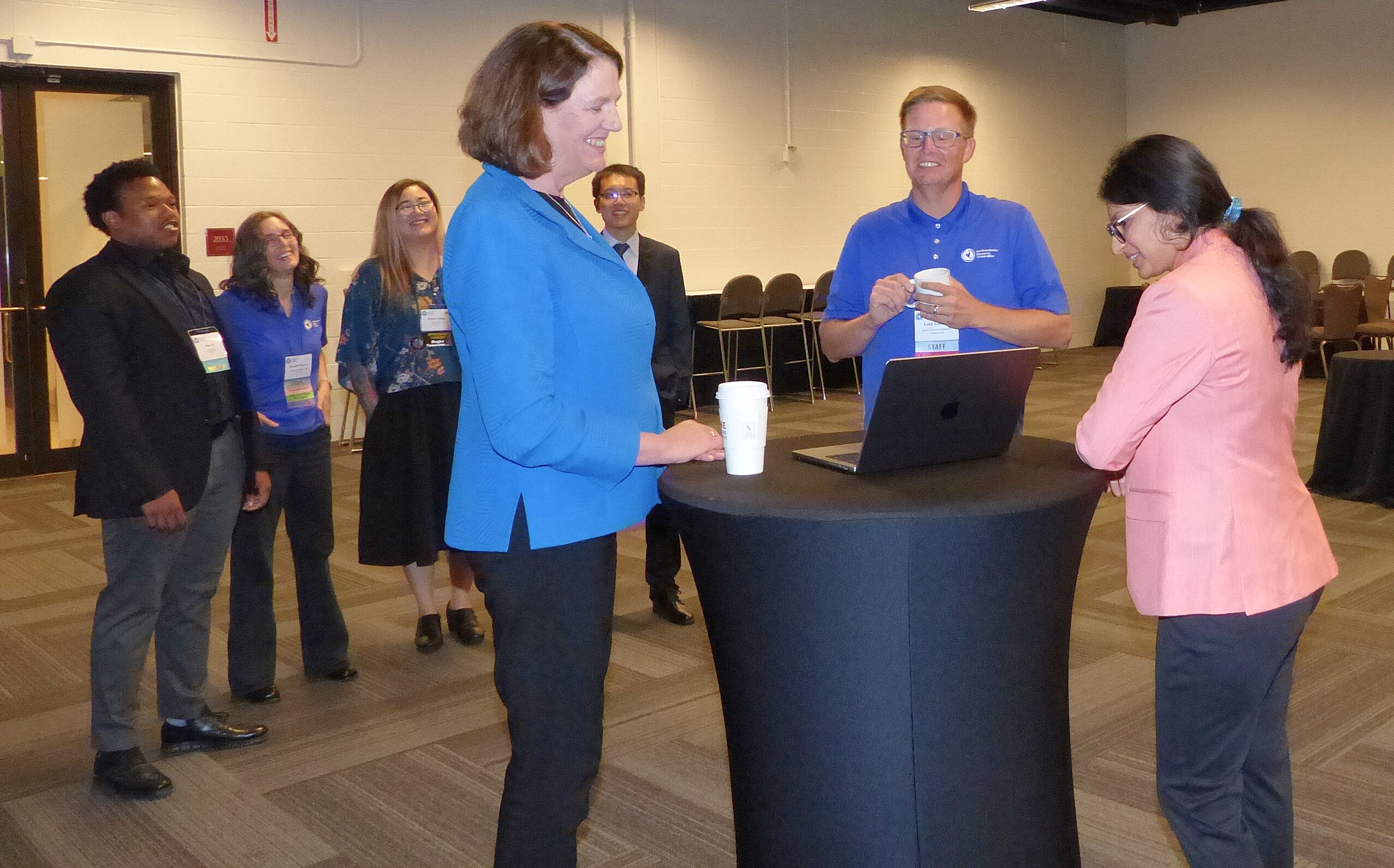 Deirdre Hanford then had the opportunity to talk with some students about their research experiences. Icelene Leong presented her materials research, which she completed during her bachelor’s degree with the JUMP SUPREME Center. She is now attending the Graduate program at Boise State, pursuing a doctorate degree in Materials Sciences. John Ali is a graduate student at Ohio State University. He presented his current research, called RLDetect, which focuses on systems security, specifically verifying constant-time programming to prevent data leaks in multi-tenant accelerators. Siddha Sharma is a Ph.D. candidate at Brown University, who shared her work on developing detailed chemistry for Per- and Polyfluoroalkyl Substances (PFAS) using computational methods. Zishen Wan, currently pursuing his Doctorate degree at Georgia Tech, presented research from the JUMP 2.0 COCOSYS Center. His research interests are computer architecture and VLSI, with a focus on system-architecture-hardware co-optimization for efficient and resilient autonomous machines and cognitive intelligence.